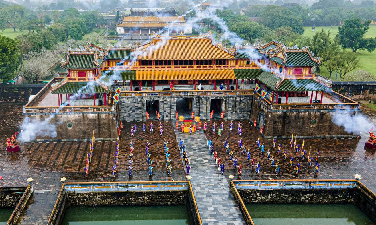 12h30: Visit the Imperial Citadel (the palace of 13th Nguyen king, the last feudal dynasty of Vietnam: Ngo Mon gate, Thai Hoa palace, the Temple, Hien Lam Pavilion, Nine Urns, having experiences wit virtual 3D scanning concept "Finding the lost palace".